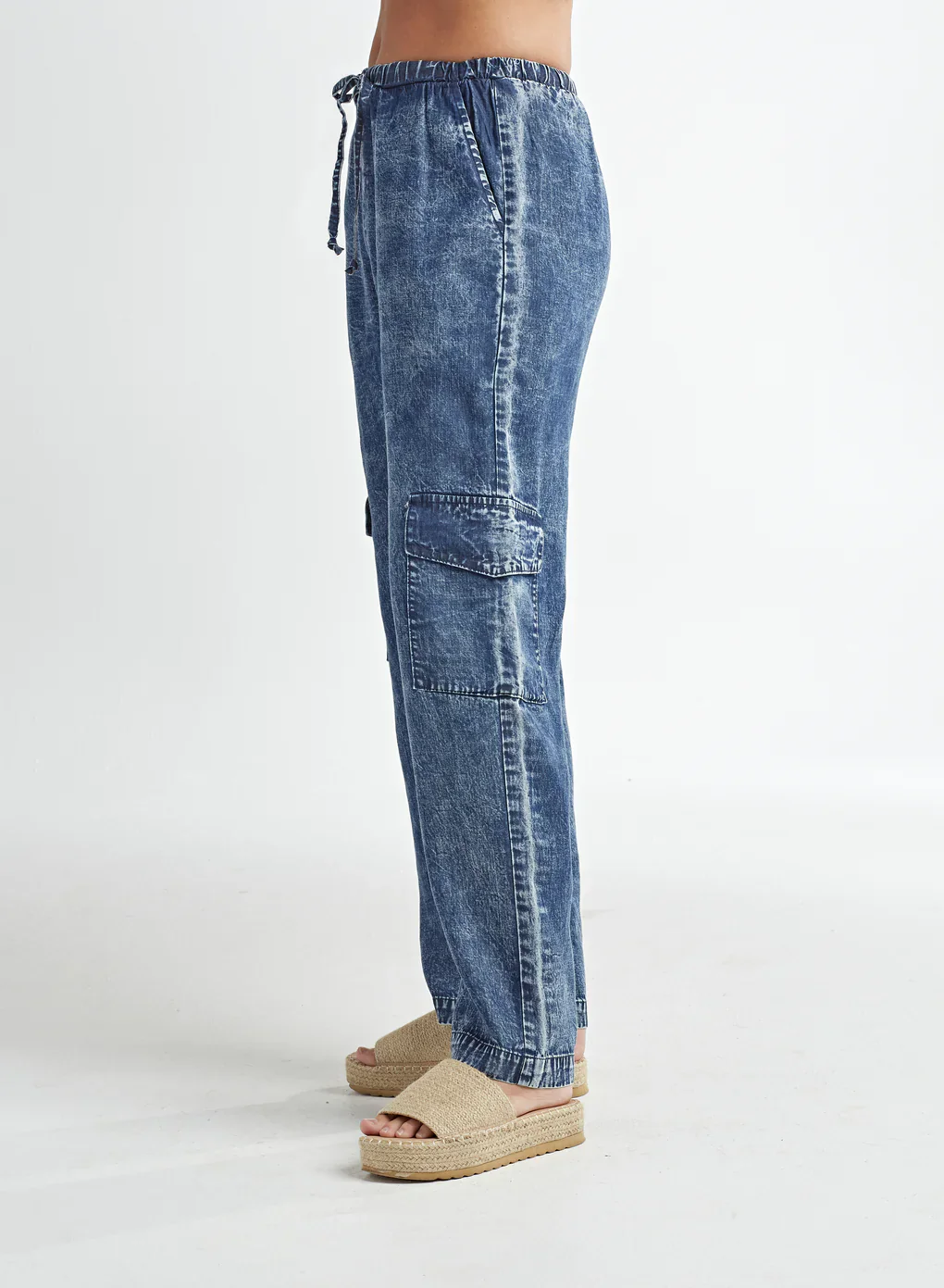 Meet the Denim Cargo Pant, a compelling fusion of style and function inspired by our Chambrey Cargo Pants. Crafted from vintage-washed chambray fabric, this pant delivers a laid-back, timeless vibe that’s perfect for everyday wear.
