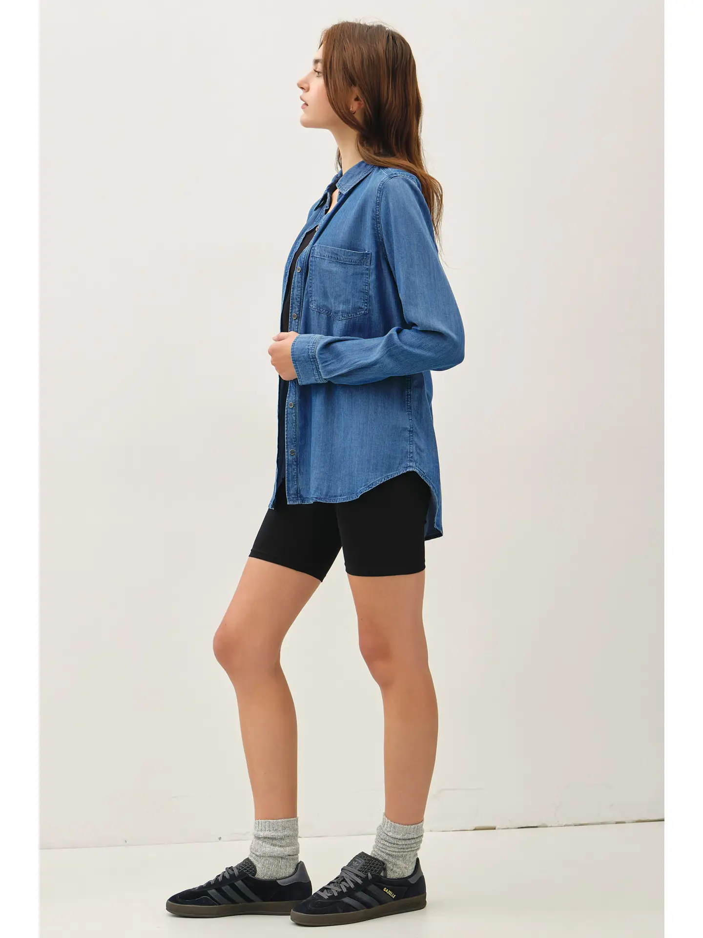 Upgrade your wardrobe with this versatile piece that effortlessly transitions from day to night. Whether you're dressing it up with a skirt or keeping it casual with jeans, this top is sure to become a staple in your collection. Don't miss out on this must-have item – add the Denim Look Collared Button Top to your cart today and experience the perfect fusion of comfort and style!
